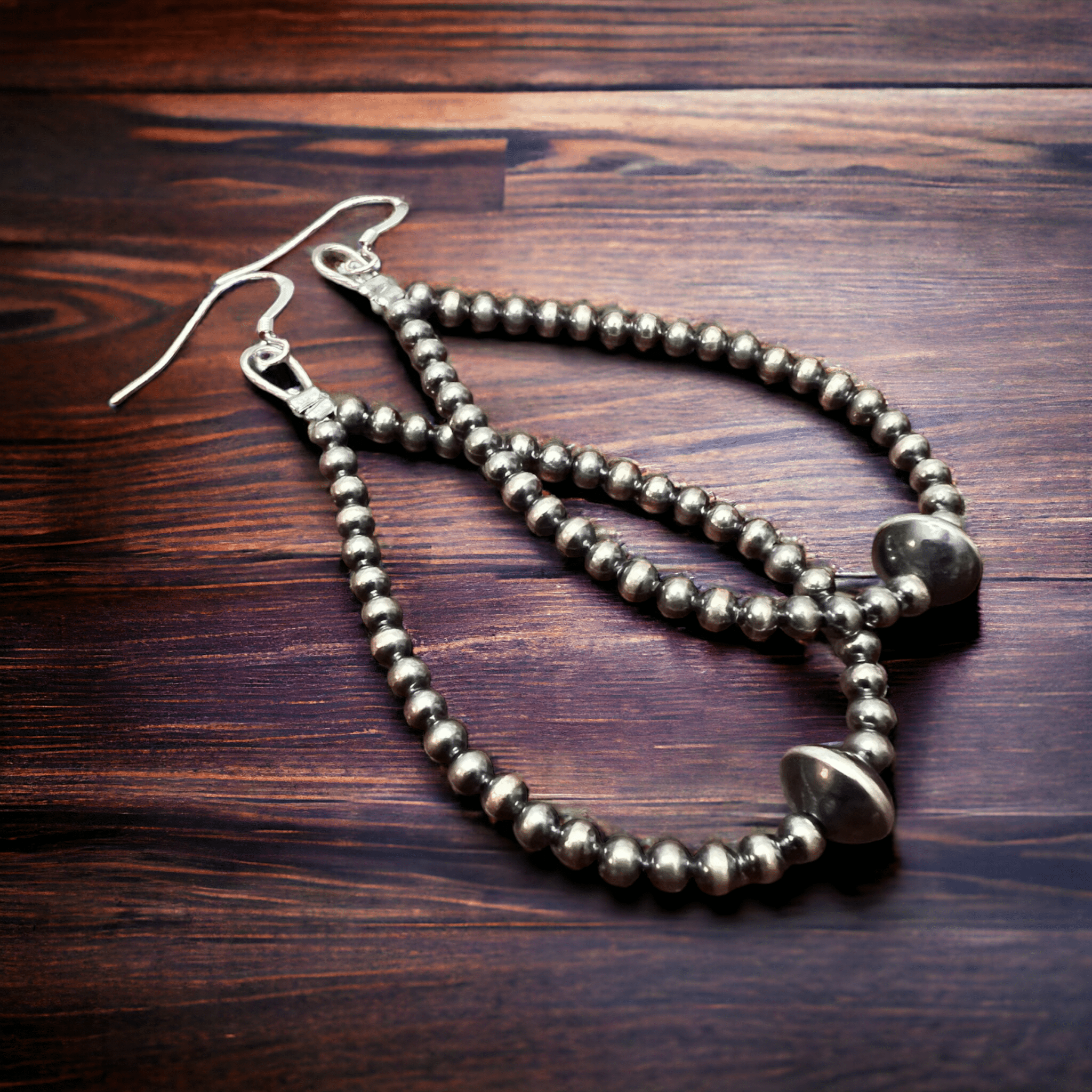 Sterling Silver Pearls teardrop earrings - 2 1/2 inch drop
