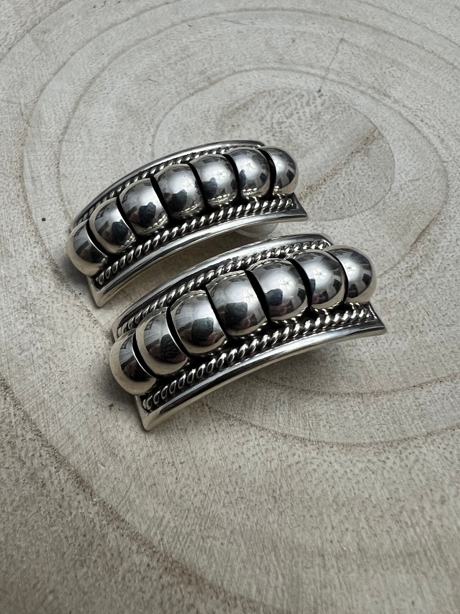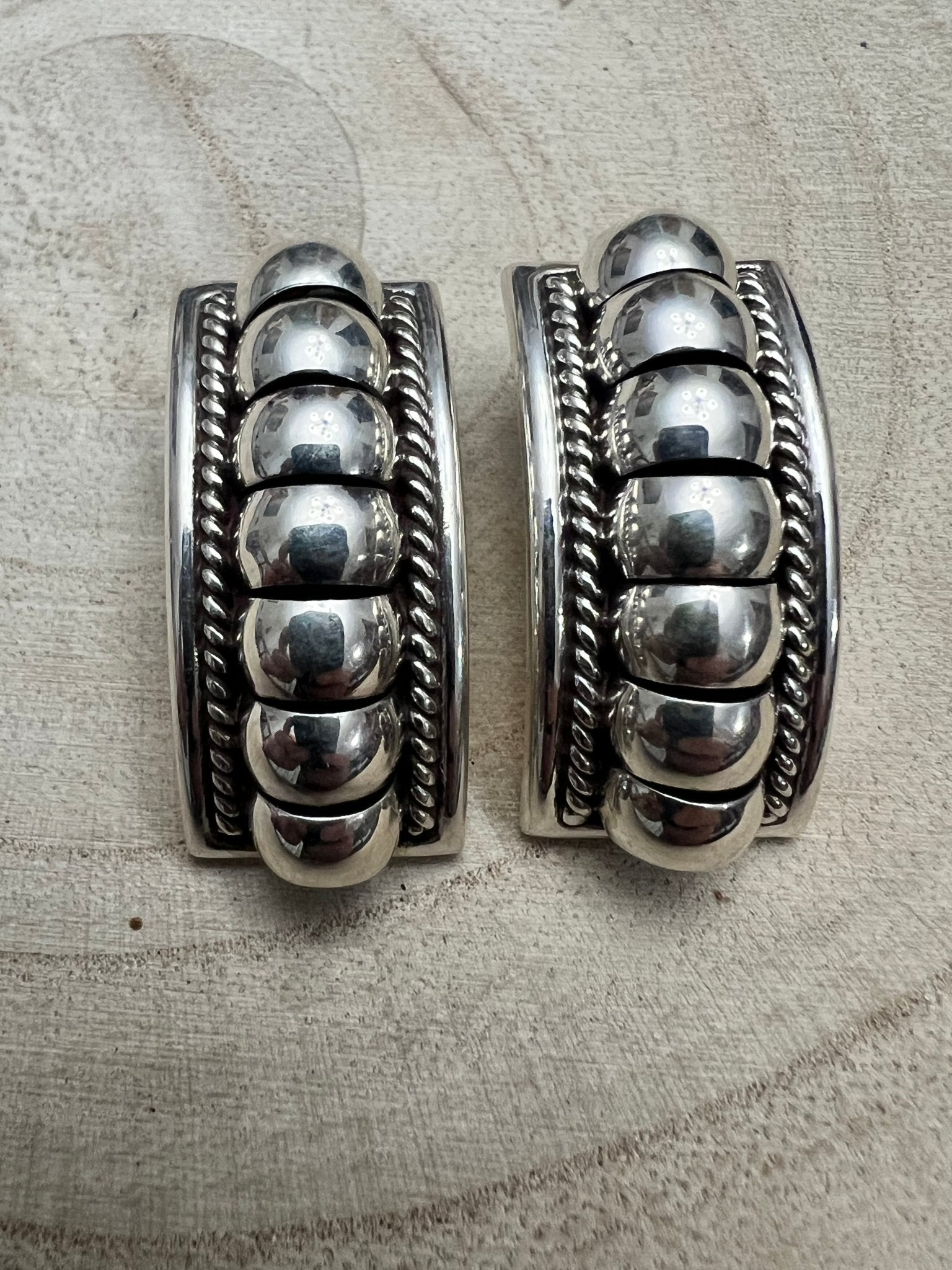 Stamped with the maker's TC hallmark and sterling silver mark, these earrings represent genuine quality and heritage. Perfect for those who appreciate traditional Native American jewelry and timeless Western style, they're versatile enough for everyday wear or special occasions. A true collector's piece that honors skilled metalwork and cultural artistry.