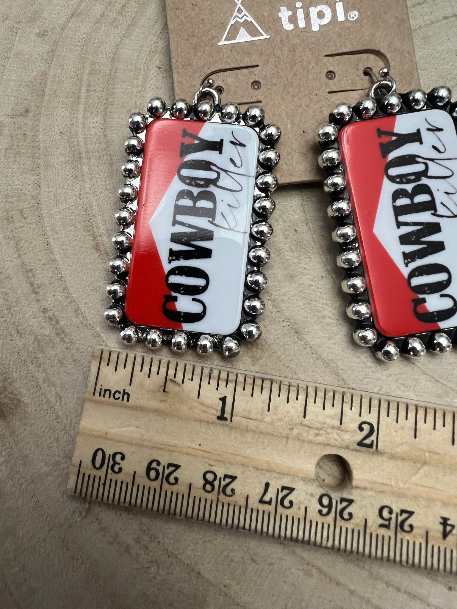 Get ready to elevate your style with our Western Cowboy Killer Rectangle Earrings. With an ride and white Color, these earrings are adorned with a high polish on the dots for a touch of Western flair.