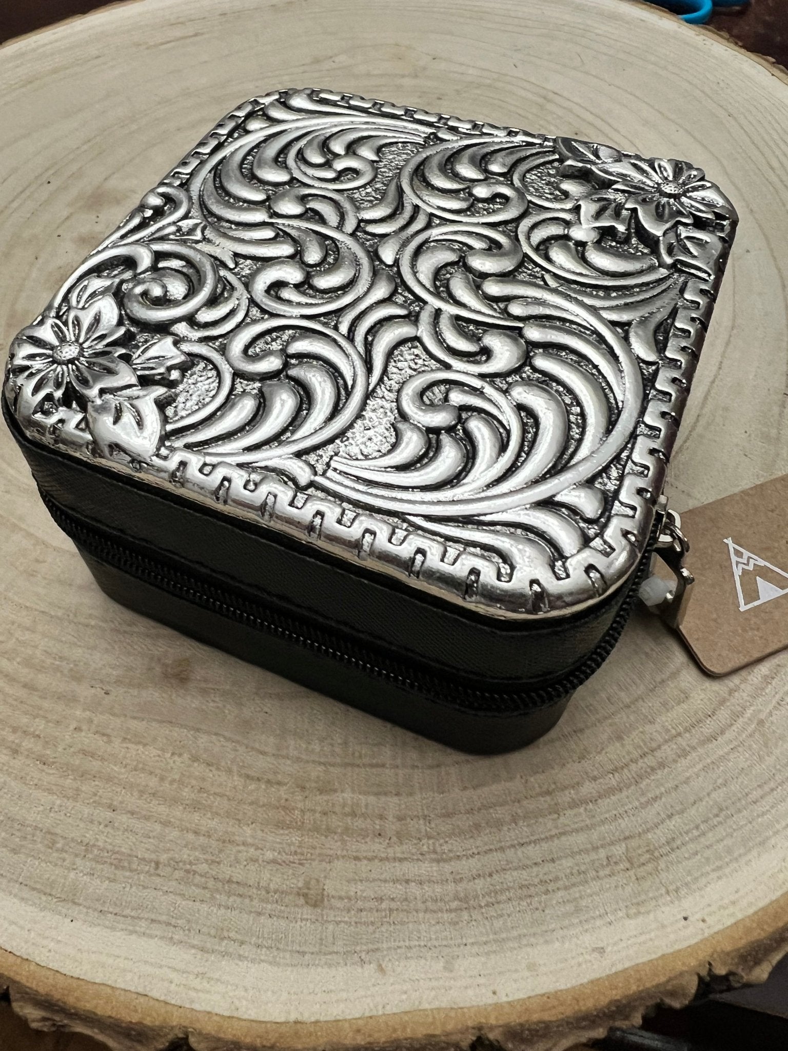 Store your treasures in our Tombstone Jewelry Box, where bold Western aesthetics meet practical organization. Featuring an etched metal design mounted over a durable zippered black case, this piece brings authentic frontier character to your vanity or dresser. The sturdy construction keeps your jewelry, rings, and accessories secure and protected from damage, while the spacious interior accommodates everything from delicate chains to statement pieces.
