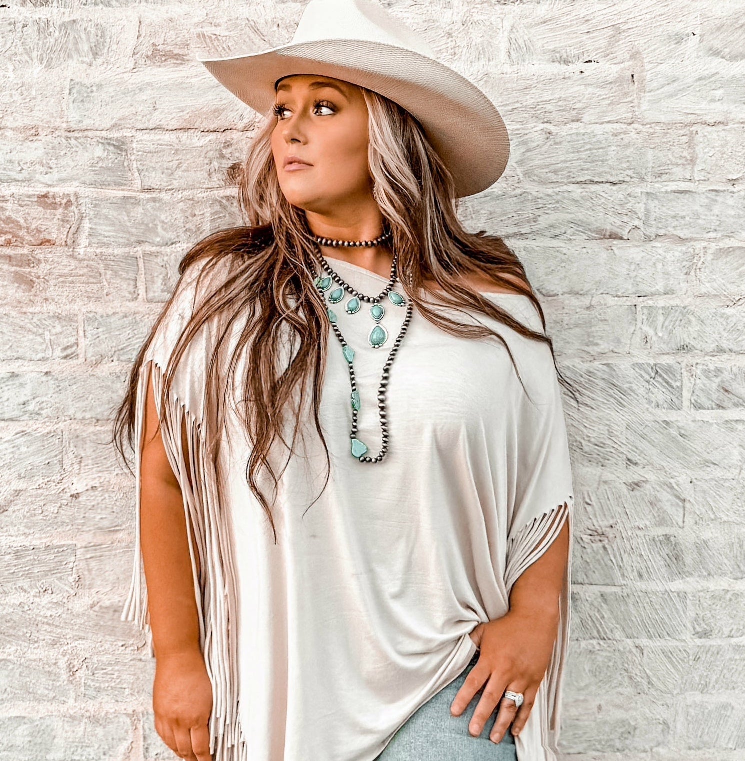 This 48-inch Long Faux Turquoise Nugget and Sterling Pearl Necklace captures the spirit of the West with its striking combination of vibrant turquoise nuggets and lustrous faux sterling pearls. Designed for those who appreciate Western style, this necklace adds a bold yet elegant touch to any outfit.