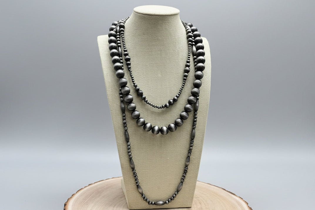 This Western Faux Sterling Pearl Necklace comes with an18, 22 and 26 inch necklaces, giving you the option to wear them together or separate. Easily transform your look from day to night with these versatile necklaces, thanks to their adjustable lengths.