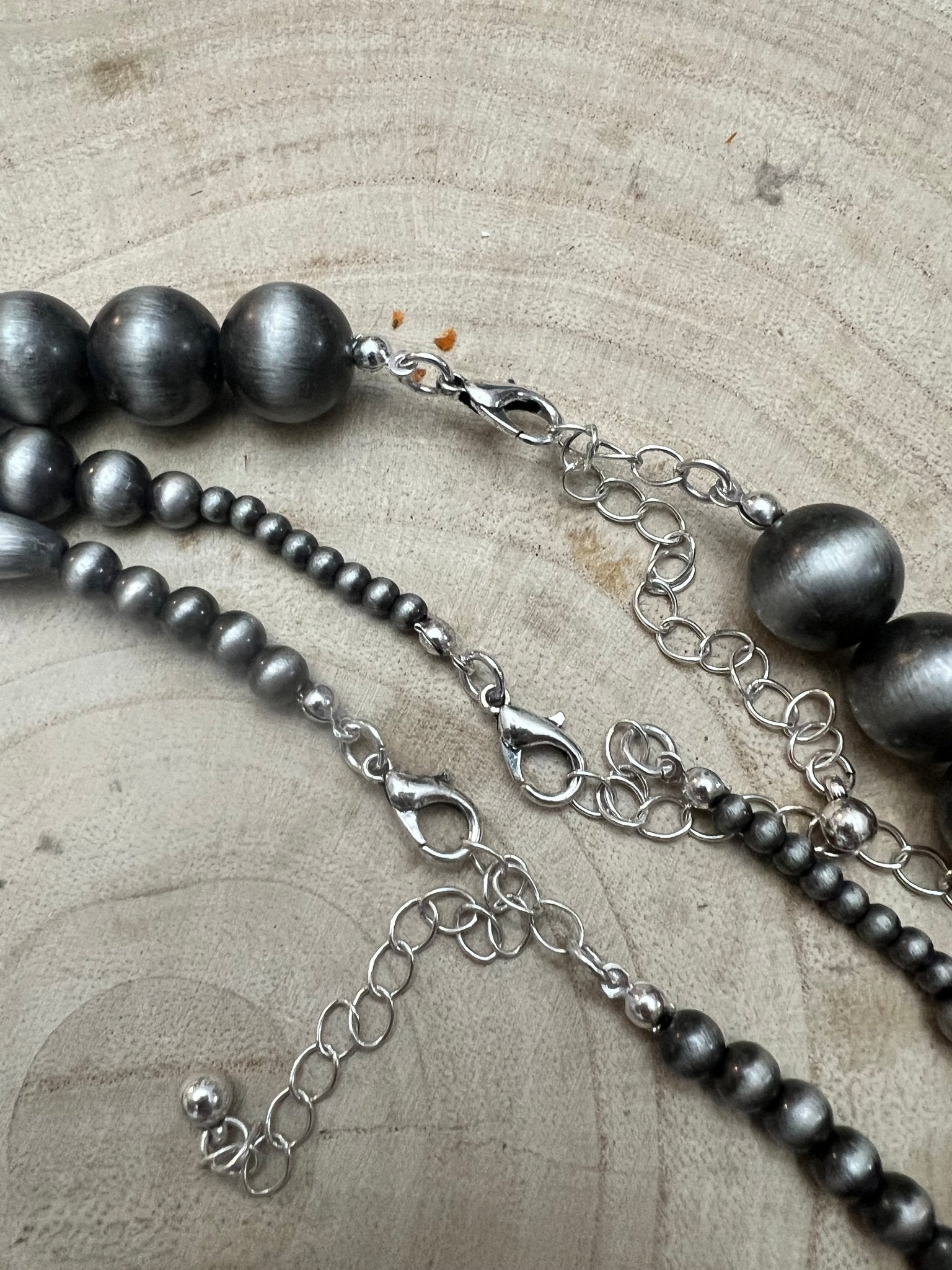 Western Faux Sterling Pearl Necklace Set - 18, 22 and 26 inch set