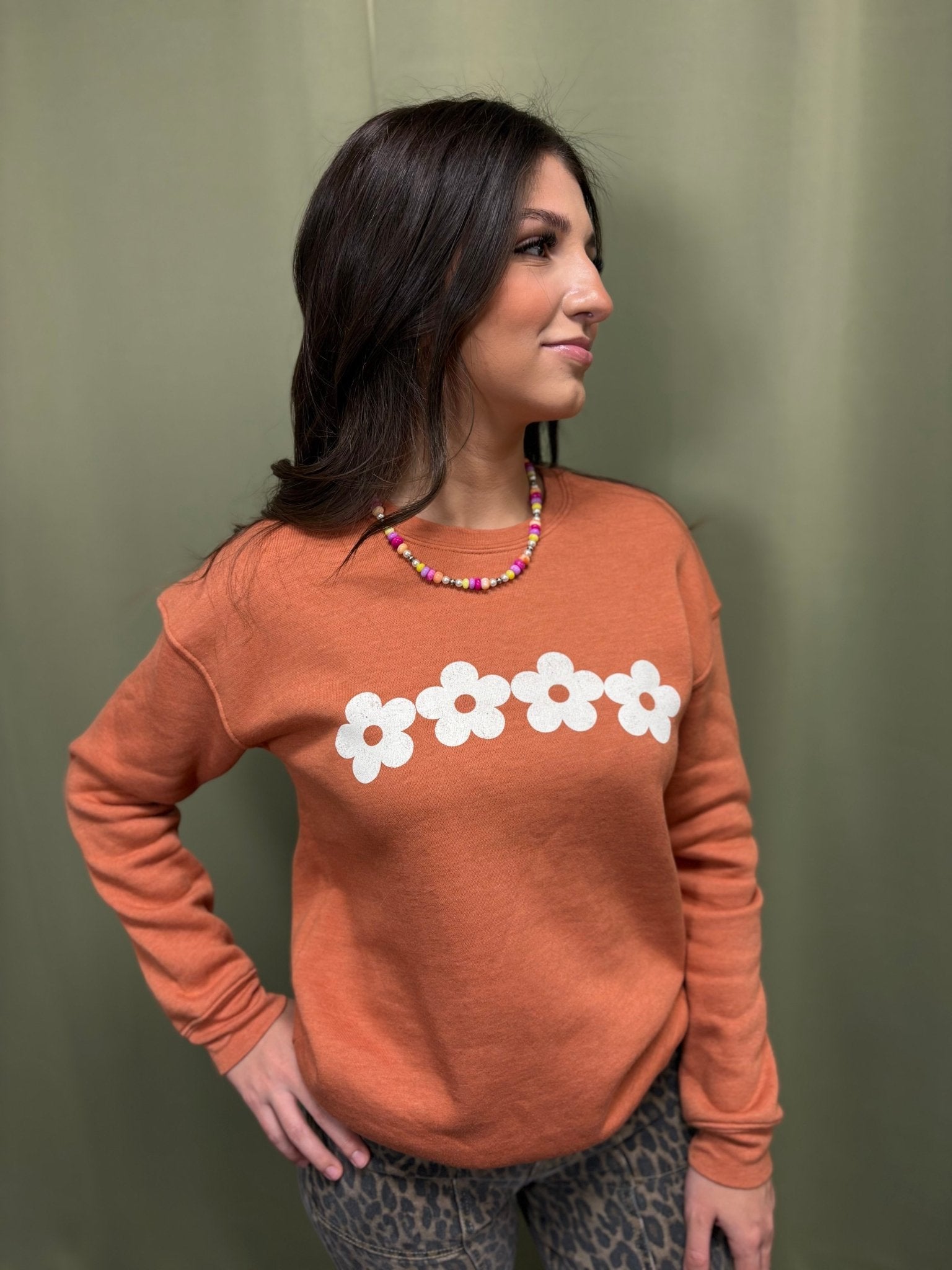 Embrace a touch of Western charm with the Daisy Row Graphic Sweatshirt in Heather Autumn. Made from plush sponge fleece, this unisex pullover delivers exceptional softness and warmth, making it ideal for year-round layering. Its relaxed fit and classic crew neck provide comfortable daily wear, while ribbed cuffs and waistband ensure a snug, stylish fit. Perfect for ranch days or casual outings, this sweatshirt blends cozy comfort with a subtle nod to Western style, making it a versatile addition to your wardrobe.