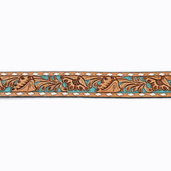 Featuring hand buck stitch edges, the belt is a beautiful blend of artistry and elegance. It comes with a removable high-quality hand-tooled leather-covered buckle, showcasing exceptional craftsmanship and attention to detail that adds to its overall appeal.
