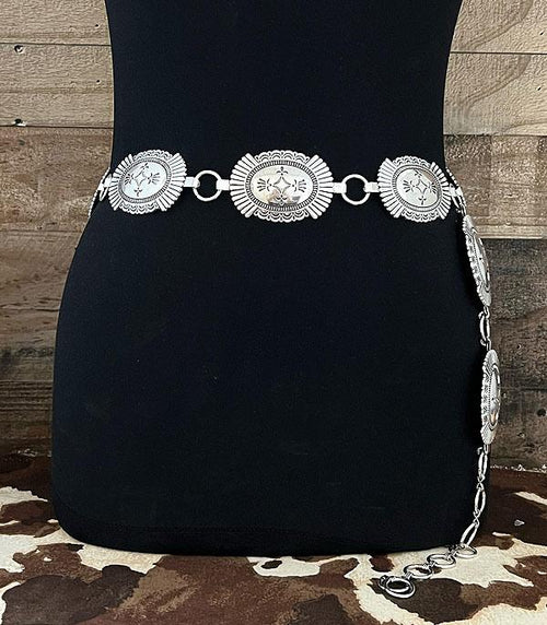 This versatile belt boasts a stylish Santa Fe concho design and is also adjustable, making it perfect for any outfit. Plus, it's lead and nickel compliant for added peace of mind.