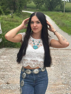 Embrace timeless Western style with the Faux Turquoise Squash Blossom and Earring Set. This beautifully crafted 18-inch necklace features a classic squash blossom design accented with vibrant faux turquoise stones, capturing the essence of Southwestern jewelry. The included 3-inch extender allows for a customizable fit, ensuring comfort and versatility for any occasion.