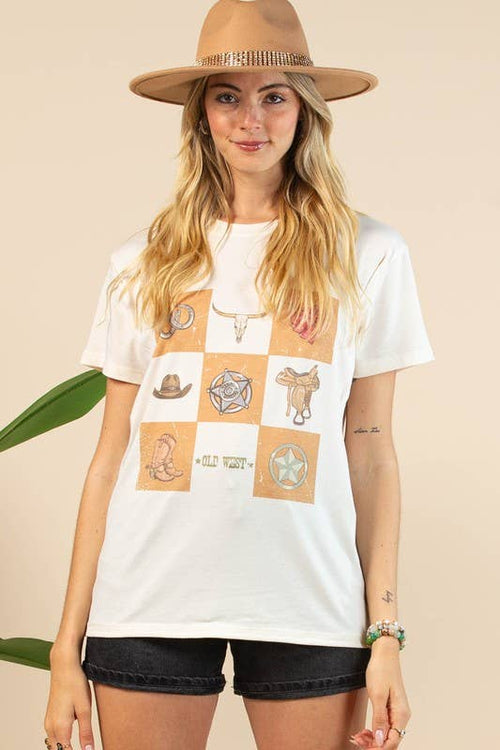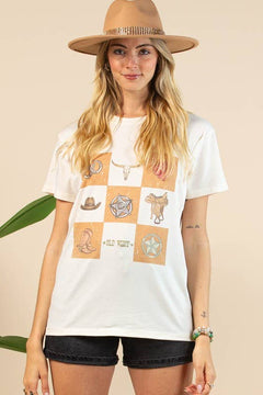 Maggie Western Elements Checker Graphic Relaxed fit T-shirt