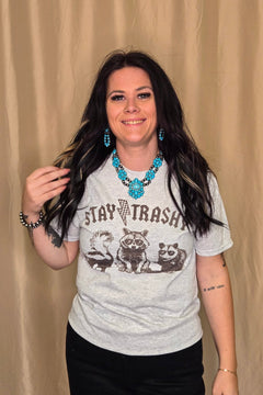 Embrace your bold spirit with the Stay Trashy T-shirt, crafted from soft Jerzees fabric for comfort and durability. This outdoor-inspired tee boasts a rugged style perfect for everyday wear, whether you're out riding or relaxing at the ranch.
