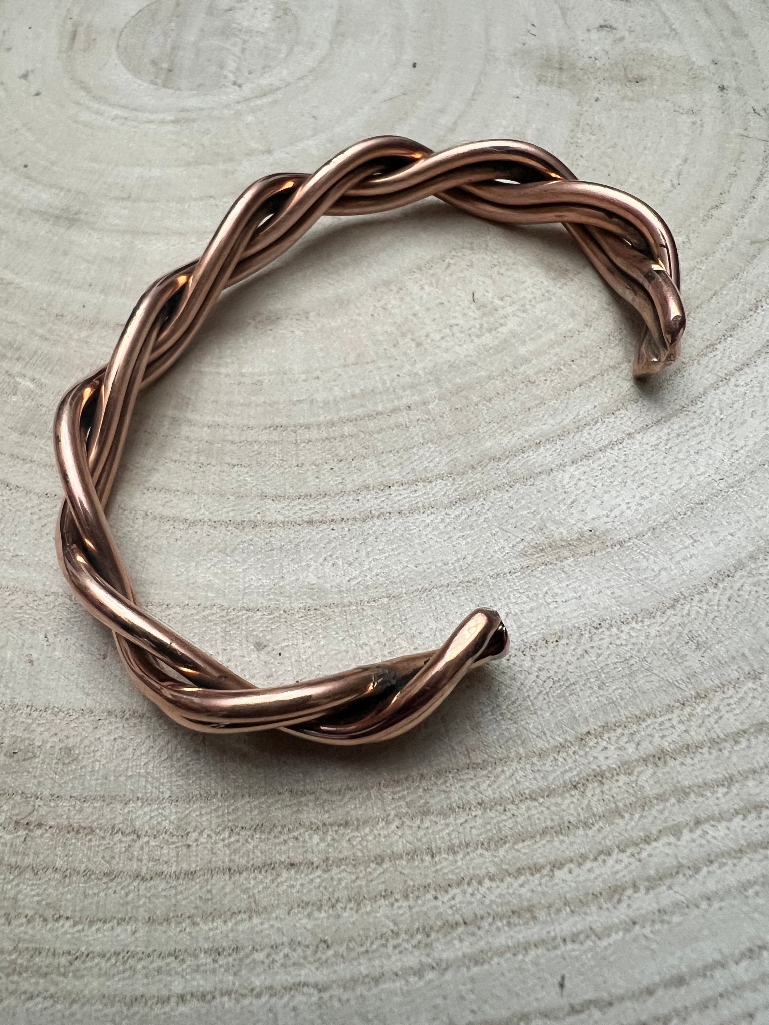 The Elaine Tahe Copper Bracelet highlights the artistry of Navajo silversmith Elaine Tahe, expertly crafted from warm copper to bring a genuine Southwestern touch to your jewelry collection. Measuring 5 7/8 inches in length with a 1 1/4-inch gap, it comfortably fits a 7 1/8-inch wrist.