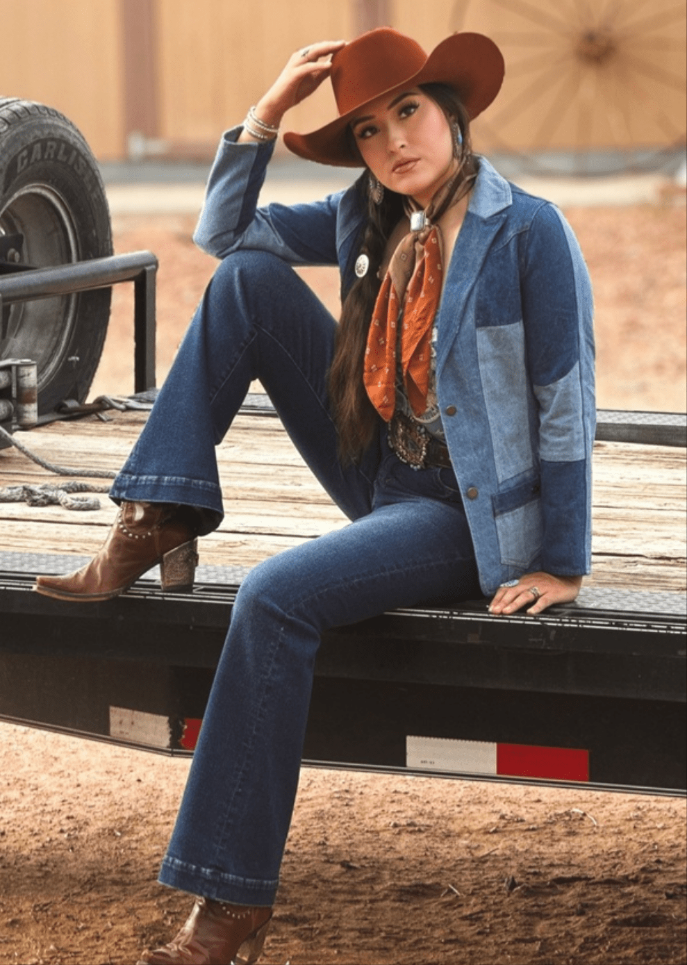 NFR Ready! Embrace classic Western style with the Multi Denim Patchwork Blazer featuring front pockets for added practicality. Crafted from a variety of denim patches, this blazer offers a rugged yet stylish look perfect for rodeo events or everyday wear. Its unique patchwork design highlights the spirit of Western apparel, combining durability with distinctive flair.