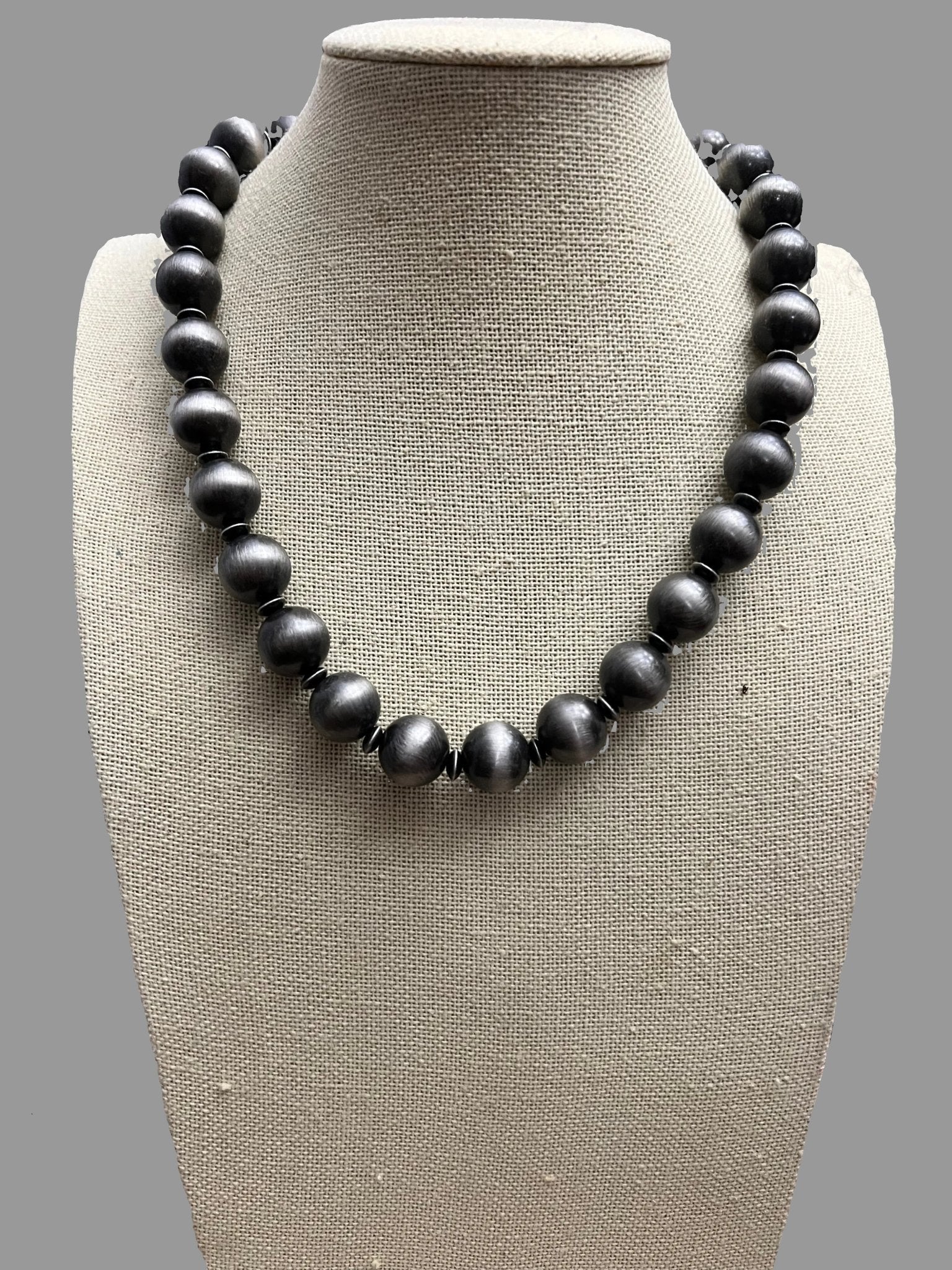 Western Faux 12mm Sterling Pearl with Saucers Necklace - 18 Inch