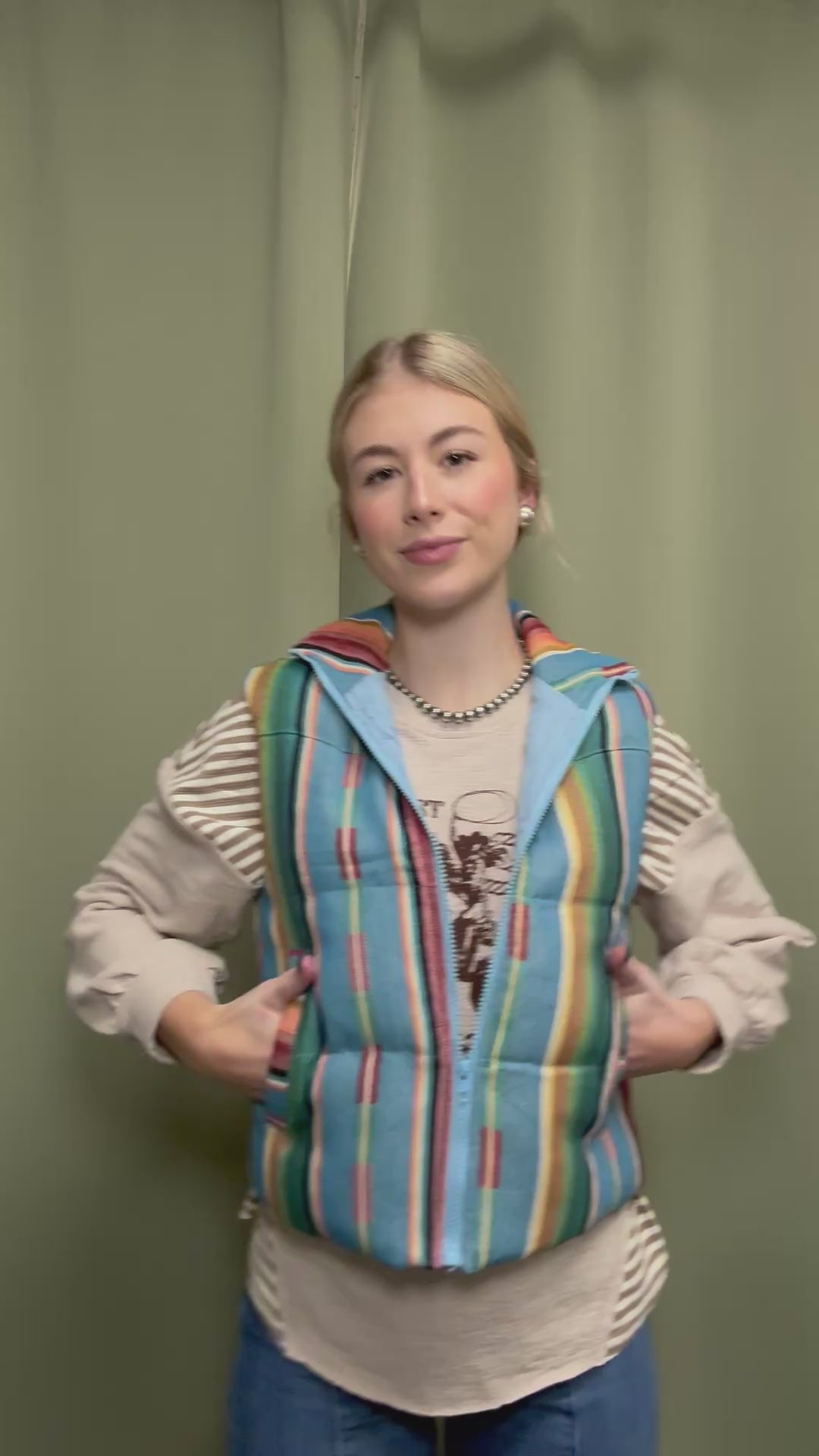Jade Serape Woven Zip-Up Sleeveless Puffer Vest