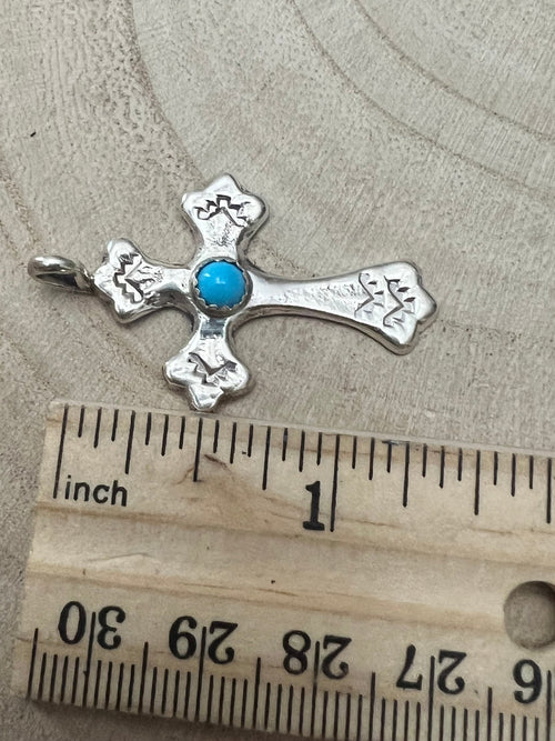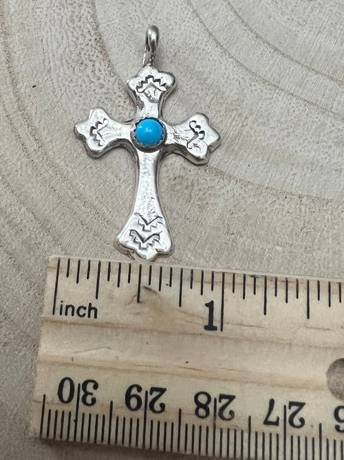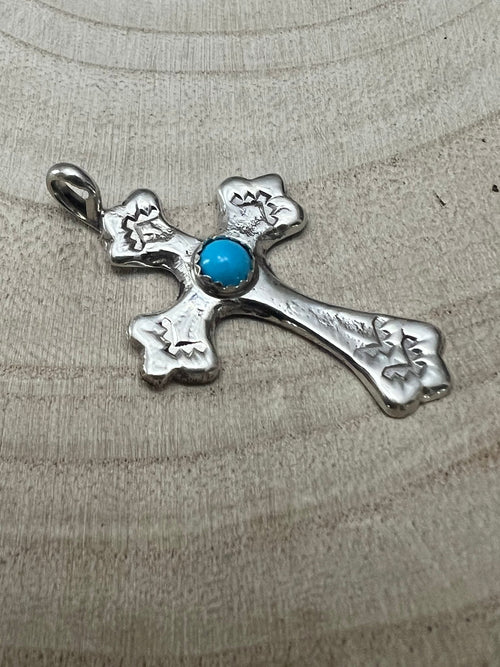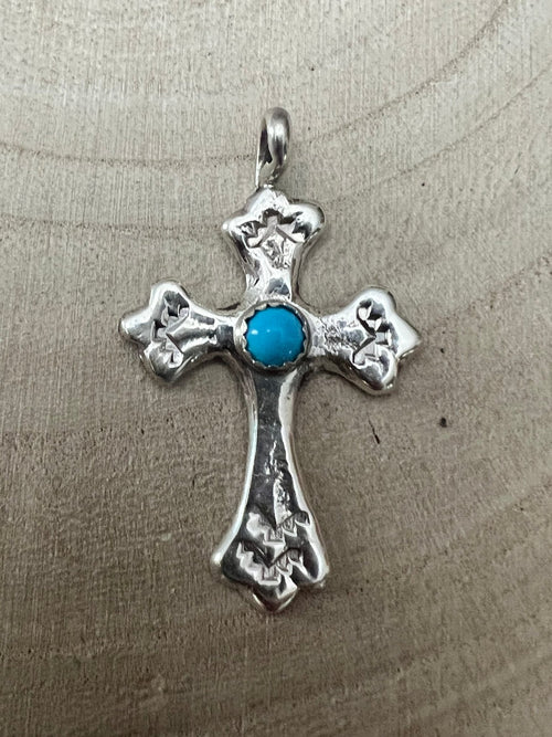 This cross pendant not only serves as a meaningful symbol but also adds a bold, rustic charm to your style. Perfect for those who appreciate genuine Southwestern artistry, it pairs beautifully with leather and silver accessories, making it a standout addition to any Western-inspired wardrobe. Embrace tradition and individuality with this timeless treasure.