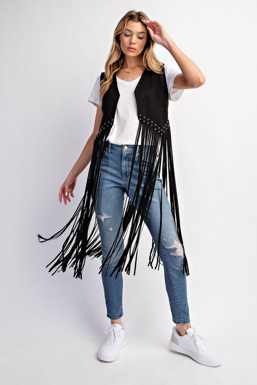 Midnight Ride Suede Studded Fringe Vest
