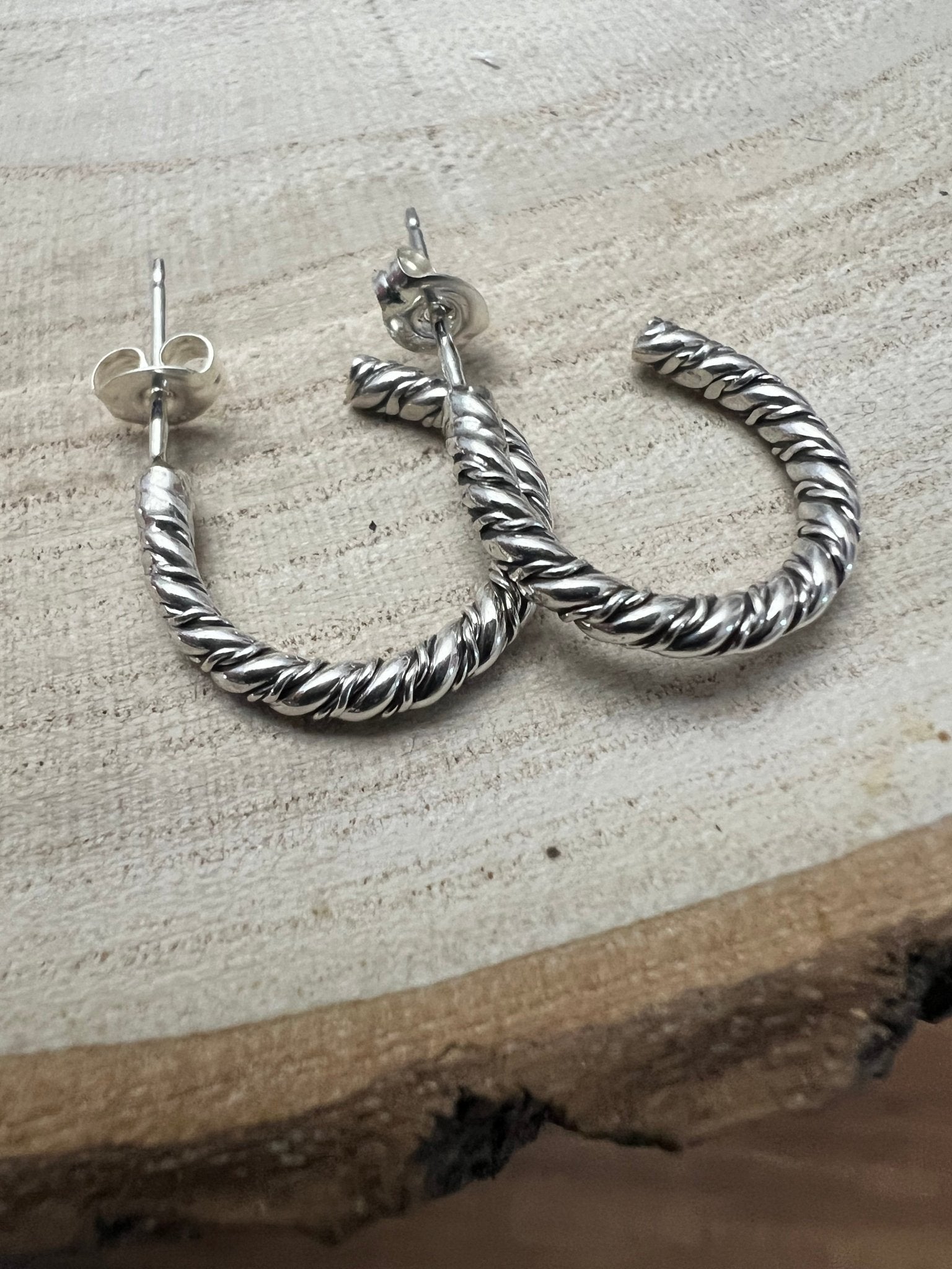 Bring a touch of Navajo tradition and craftsmanship into your everyday style with these finely crafted sterling silver hoop earrings.